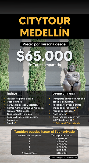 Ven a Medellín y realiza los mejores tours de la región. Contamos con todas las actividades que querrías disfrutar en la ciudad de la eterna primavera. Desde tours en chiva por la ciudad, hasta visitas a pueblos como Guatapé. Descubre la manera más divertida de conocer Medellín.